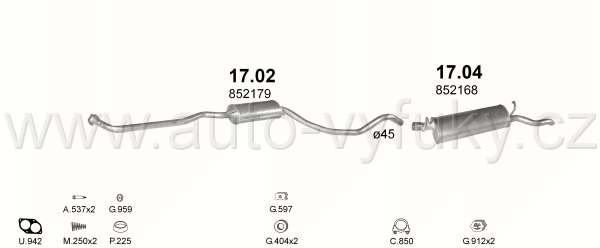 Tlumič výfuku koncový , kód: 17.04 Příklad použití: Opel Ascona C 81-88 1.3S/1.6S, kódy Bosal Walker aj.: 05.045 34.7052 185-953 08.383.83 P4379... |