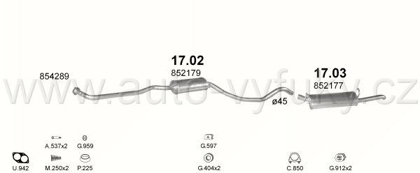 Tlumič výfuku koncový , kód: 17.03 Příklad použití: Opel Ascona C 81-89 1.6/2.0i kat, kódy Bosal Walker aj.: 05.006 34.7054 185-955 08.383.82 P4378... |