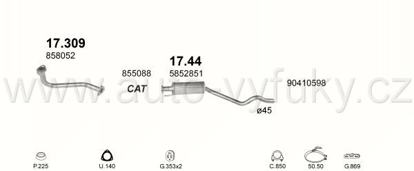 Tlumič výfuku střední , kód: 17.44 Příklad použití: Opel Astra 1.4i/1.6i kat 91-98, kódy Bosal Walker aj.: 05.070 34.6052 282-309 53.21.06 01.52780... |