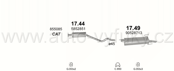 Tlumič výfuku střední , kód: 17.44 Příklad použití: Opel Astra 1.4i/1.6i kat 91-98, kódy Bosal Walker aj.: 05.070 34.6052 282-309 53.21.06 01.52780... |