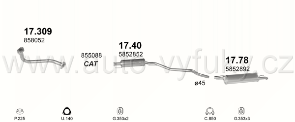 Sběrné potrubí Nerez, kód: 17.309 Příklad použití: Opel Astra 1.6i 93-96, kódy Bosal Walker aj.: 05.053 779-237 53.42.41 01.11560 21555 858005 858052... |