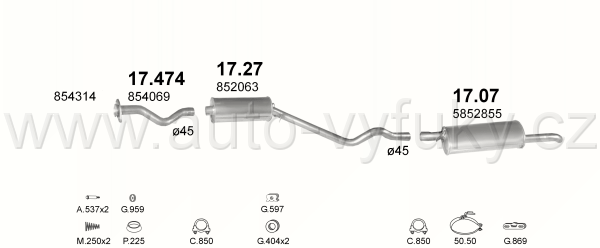 Tlumič výfuku koncový , kód: 17.07 Příklad použití: Opel Kadett E 84-91/Astra I 91-96 1.4/1.6i/1.7D/1.8/2.0 kat, kódy Bosal Walker aj.: 05.011 05.069... |
