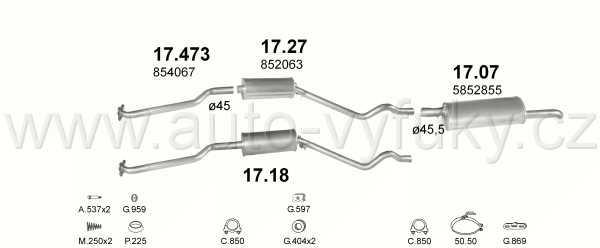 Tlumič výfuku koncový , kód: 17.07 Příklad použití: Opel Kadett E 84-91/Astra I 91-96 1.4/1.6i/1.7D/1.8/2.0 kat, kódy Bosal Walker aj.: 05.011 05.069... |