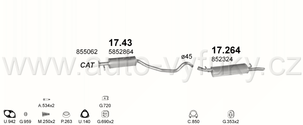 Tlumič výfuku střední , kód: 17.43 Příklad použití: Opel Vectra 1.6 kat 88-95, kódy Bosal Walker aj.: 05.064 34.6029 281-159 08.189.84 033077 P4415... |