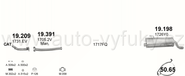 Propojovací potrubí , kód: 19.391 Příklad použití: Peugeot 206 1.1i ; 1.4i 98-, kódy Bosal Walker aj.: 08.051 36.3007 741-015 56.16.02 01.21940 07162... |