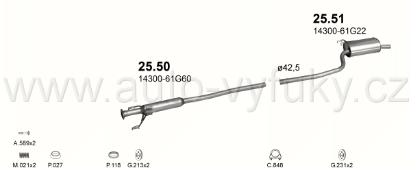 Tlumič výfuku střední , kód: 25.50 Příklad použití: Suzuki Baleno 1.3i-16V 1.6i-16V 95-00, kódy Bosal Walker aj.: 25.010 283-705 01.50488 270466... |