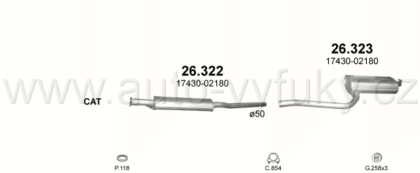 Tlumič výfuku koncový , kód: 26.323 Příklad použití: Toyota Avensis 1.6i-16V , 1.8i-16V , 2.0i-16V lifback , sedan 97-00, kódy Bosal Walker aj.:... |