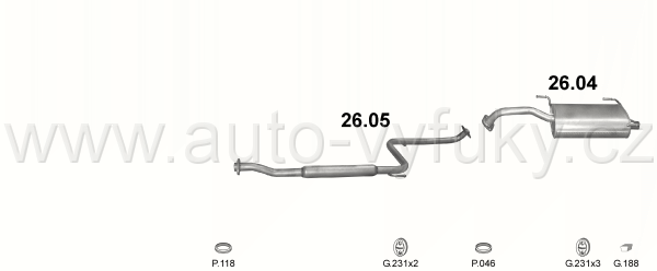 Tlumič výfuku střední , kód: 26.05 Příklad použití: Toyota Celica 1.6 10/89-10/93, kódy Bosal Walker aj.: 17420-16372 e3 03 0149 |