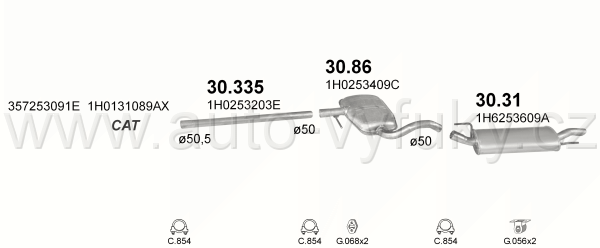 2_30.335 Trubka střední VOLKSWAGEN GOLF III 1.6 HATCHBACK 12/1995-9/1997 1595ccm 74kW / 101HP KAT GTI