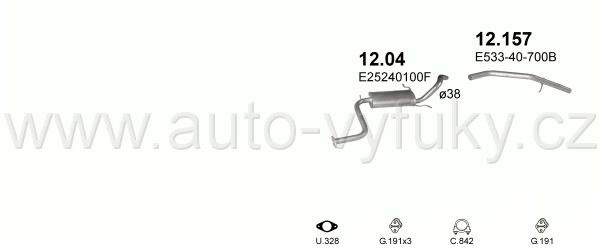Tlumič výfuku koncový , kód: 12.04 Příklad použití: Mazda 323 85-89 1.1-1.5/1.7D, kódy Bosal Walker aj.: 11.015 278-339 49.689.84 P3415 29.019 MA90P... |