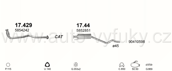 Sběrné potrubí , kód: 17.429 Příklad použití: Opel Astra F/ Vectra A 1.7TD, kódy Bosal Walker aj.: 05.054 34.1044 802-437 53.26.01 01.11750 21548... |
