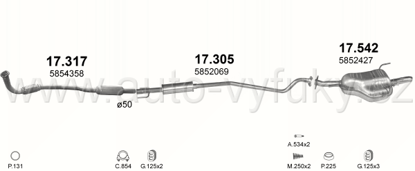 Tlumič výfuku náhrada , kód: 17.317 Příklad použití: Opel Astra G 1.7 DTi 02/00-09/04, kódy Bosal Walker aj.: 34.0075 099-462 752220 53.33.43 321505... |