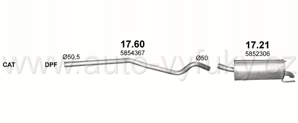 Trubka střední , kód: 17.60 Příklad použití: Opel Astra H 1.7 CDTi turbo Diesel, kódy Bosal Walker aj.: 850-093 054478 01.40359 13220389 5854367 |