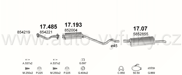 Trubka střední , kód: 17.485 Příklad použití: Opel Kadett 89-91 1.7D, kódy Bosal Walker aj.: 05.087 34.3005 738-153 53.18.22 21.135 VL520C 110171... |