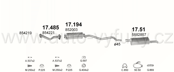 Tlumič výfuku koncový , kód: 17.51 Příklad použití: Opel Astra 1.6i 91-96/Kadett E 84-91 1.6i kombi kat, kódy Bosal Walker aj.: 05.012 05.071 05.009... |