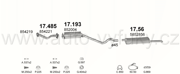Trubka střední , kód: 17.485 Příklad použití: Opel Kadett 89-91 1.7D, kódy Bosal Walker aj.: 05.087 34.3005 738-153 53.18.22 21.135 VL520C 110171... |