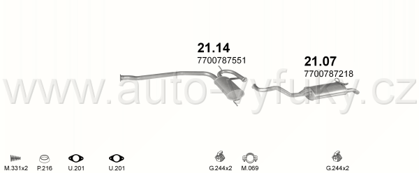 Tlumič výfuku koncový , kód: 21.07 Příklad použití: Renault R19 1.7; 1.9TD HB 88-96, kódy Bosal Walker aj.: 10.016 40.7054 278-221 17.2.74 17.2.28...