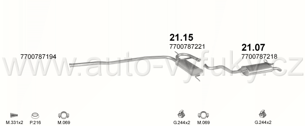 Tlumič výfuku koncový , kód: 21.07 Příklad použití: Renault R19 1.7; 1.9TD HB 88-96, kódy Bosal Walker aj.: 10.016 40.7054 278-221 17.2.74 17.2.28...