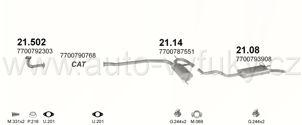 7_21.08 Tlumič výfuku koncový RENAULT R19 1.7 SEDAN 8/1988-4/1992 1721ccm 54kW / 73HP KAT TS, GTS, TSE, CHAMADE
