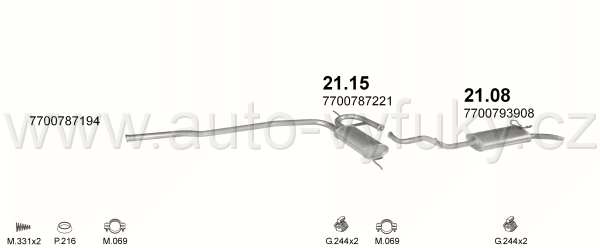 Tlumič výfuku koncový , kód: 21.08 Příklad použití: Renault R19 1.4; 1.7; 1.9D Chamade kat 88-92, kódy Bosal Walker aj.: 10.015 40.7058 280-271... |