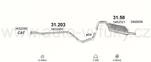 Trubka střední , kód: 31.203 Příklad použití: Volvo 440 1.7 Turbo, kódy Bosal Walker aj.: 60.5006 935-177 P7864 VO170E 150165 01.53830 VL90045 19709...