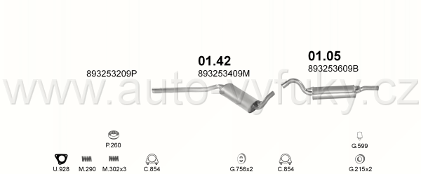 1_01.42 Tlumič výfuku střední AUDI 80 1.8 SEDAN 10/1986-8/1991 1781ccm 55kW / 75HP AUT.