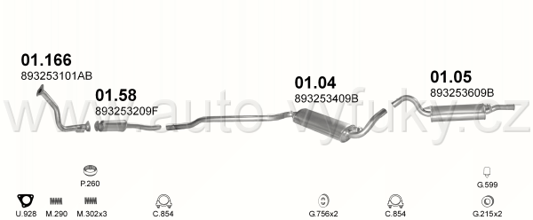 Tlumič výfuku koncový , kód: 01.05 Příklad použití: Audi 80 86-91/Coupe 89-91 1.6-2.0/kat/S/I, kódy Bosal Walker aj.: 04.021 04.7003 105-017 95 11... |