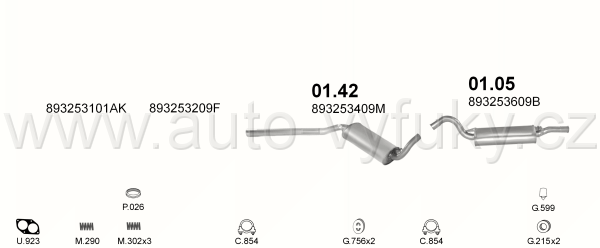 Tlumič výfuku střední , kód: 01.42 Příklad použití: Audi 80/90/Coupe 2.0 05/89-07/90 aut., kódy Bosal Walker aj.: 04.020 105-019 AU144A 240029... |