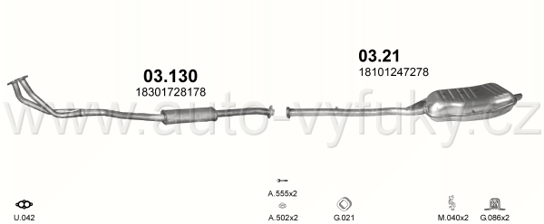 Tlumič výfuku náhrada , kód: 03.130 Příklad použití: BMW 316i E36 93-95 , 318i E36 93-95, kódy Bosal Walker aj.: 08.0003 099-117 21.493.60 756150...