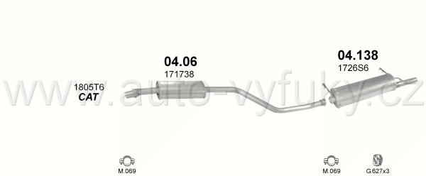 Tlumič výfuku koncový , kód: 04.138 Příklad použití: Citroen Xsara 1.4i/ 1.6i/ 1.8i/ 1.5D/ 1.8D/ 1.9D HB 97-99, kódy Bosal Walker aj.: 09.045 10.7043... |