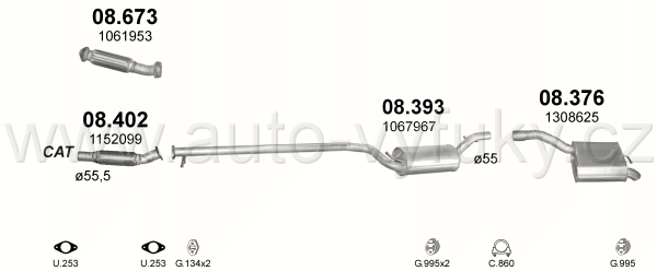 Trubka ke katalyzátoru , kód: 08.673 Příklad použití: Ford Focus 1.8 Tdi Turbo Diesel hatchback , sedan , kombi 98-99, kódy Bosal Walker aj.: 07.158... |