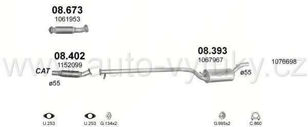 Tlumič výfuku střední , kód: 08.393 Příklad použití: Ford Focus 1.8TD 99-, kódy Bosal Walker aj.: 07.154 14.6091 287-071 288-279 04.103.80 341073... |