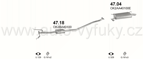 Tlumič výfuku střední , kód: 47.18 Příklad použití: Kia Shuma 1.8i 16V 98-2002, kódy Bosal Walker aj.: OK2BA-40-100 E20 59R-00 1236 |