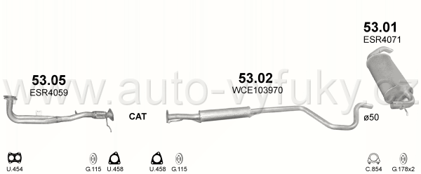 1_53.02 Tlumič výfuku střední LAND ROVER FREELANDER 1.8 10/1997-8/2000 1796ccm 87kW / 118HP KAT 1.8i -16V 2555mm