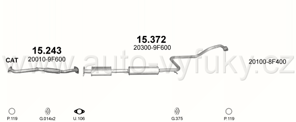 Tlumič výfuku střední , kód: 15.372 Příklad použití: Nissan Primera 1.6i-16V 00-02 , 1.8i-16v 99-02, kódy Bosal Walker aj.: 288-577 44.700.81 P4263... |