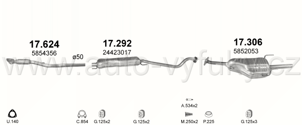 Sběrné potrubí , kód: 17.624 Příklad použití: Opel Astra G 1.8i-16V , Zafira 1.8i-16V, kódy Bosal Walker aj.: 34.4003 852-455 08.102.72 053402 P4518... |