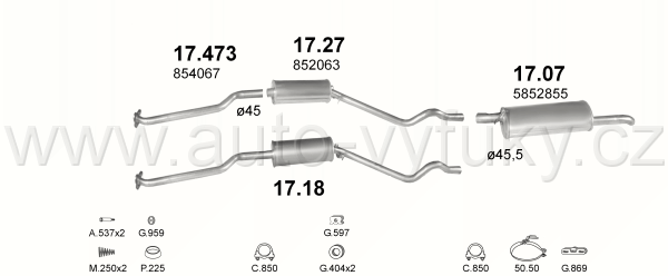 Tlumič výfuku koncový , kód: 17.07 Příklad použití: Opel Kadett E 84-91/Astra I 91-96 1.4/1.6i/1.7D/1.8/2.0 kat, kódy Bosal Walker aj.: 05.011 05.069... |
