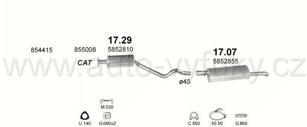 Tlumič výfuku střední , kód: 17.29 Příklad použití: Opel Kadett E 85-91 1.6i/1.8i kat, kódy Bosal Walker aj.: 05.042 34.6025 281-129 08.388.81 P4420...