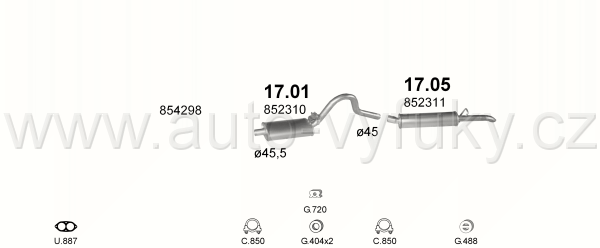 Tlumič výfuku střední , kód: 17.01 Příklad použití: Opel Ascona B 75-81/Manta 75-83 1.6/1.9, kódy Bosal Walker aj.: 05.020 34.6058 185-711 P4372... |