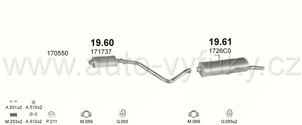 Tlumič výfuku koncový , kód: 19.61 Příklad použití: Peugeot 306 1.4-1.8 SDN kat 94-, kódy Bosal Walker aj.: 08.025 36.7025 190-227 190-229 19.0.27...