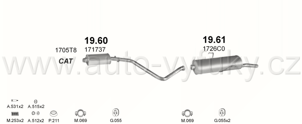 Tlumič výfuku koncový , kód: 19.61 Příklad použití: Peugeot 306 1.4-1.8 SDN kat 94-, kódy Bosal Walker aj.: 08.025 36.7025 190-227 190-229 19.0.27...