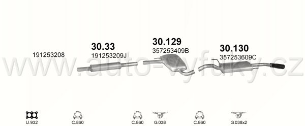 Tlumič výfuku střední , kód: 30.33 Příklad použití: VW Passat 2.0 -16V kat 88-93/Corrado/Golf 85-91/Seat Toledo 91-, kódy Bosal Walker aj.: 279-525... |