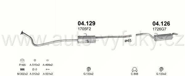 Tlumič výfuku střední , kód: 04.129 Příklad použití: Citroen Jumpy 1.9D LWP 95-/Fiat Scudo 1.9D 95-/Peugeut Expert 1.9D 99-00, kódy Bosal Walker aj.:... |