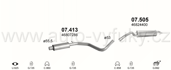 Tlumič výfuku opravný , kód: 07.413 Příklad použití: Fiat Stilo 1.9 JTD 01-, kódy Bosal Walker aj.: 16.034 12.6101 12.7122 279-401 279-405 03.202.80... |