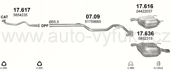 Tlumič výfuku koncový , kód: 17.636 Příklad použití: Opel Vectra C 1.9 CDTi, kódy Bosal Walker aj.: 34.7115 185-095 08.402.84 044004 P4569 21.222... |