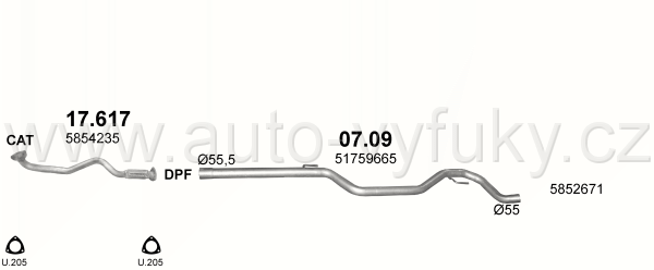 Trubka střední , kód: 07.09 Příklad použití: Fiat Croma 1.9 JTD / Opel Vectra / Saab 9-3, kódy Bosal Walker aj.: 34.5005 855-001 08.302.75 043472... |