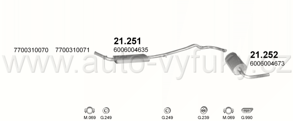 Tlumič výfuku koncový , kód: 21.252 Příklad použití: Renault Trafic 1.9D; 2.1D; 2.5D 94-, kódy Bosal Walker aj.: 200-989 01.60696 21419 6006004673... |