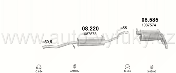 Tlumič výfuku střední , kód: 08.220 Příklad použití: Ford Galaxy 1.9TDi 95-00 Seat Alhambra 1.9TDi 96-00 VW Sharan 1.9TDi 96-00, kódy Bosal Walker... |