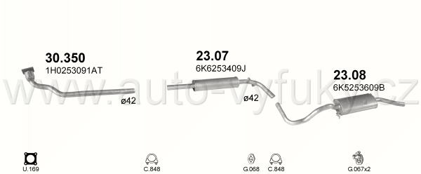 Tlumič výfuku střední , kód: 23.07 Příklad použití: Seat Codroba/Ibiza 1.0i; 1.3i; 1.4i;1.6i; 1.9D 93-02/ VW Polo 1.4i 95-01, kódy Bosal Walker aj.:... |