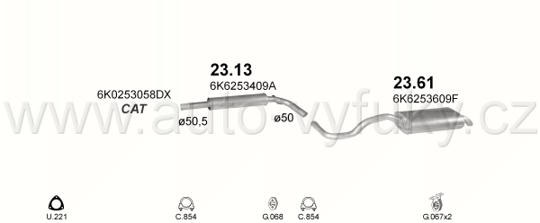 Tlumič výfuku střední , kód: 23.13 Příklad použití: Seat Cordoba/Ibiza1.0i; 1.4i; 1,6i SDN;1.8; 1.9SDi; 1.9TD 94-02; VW Polo 1.4i; 1.6i 95 -01;... |